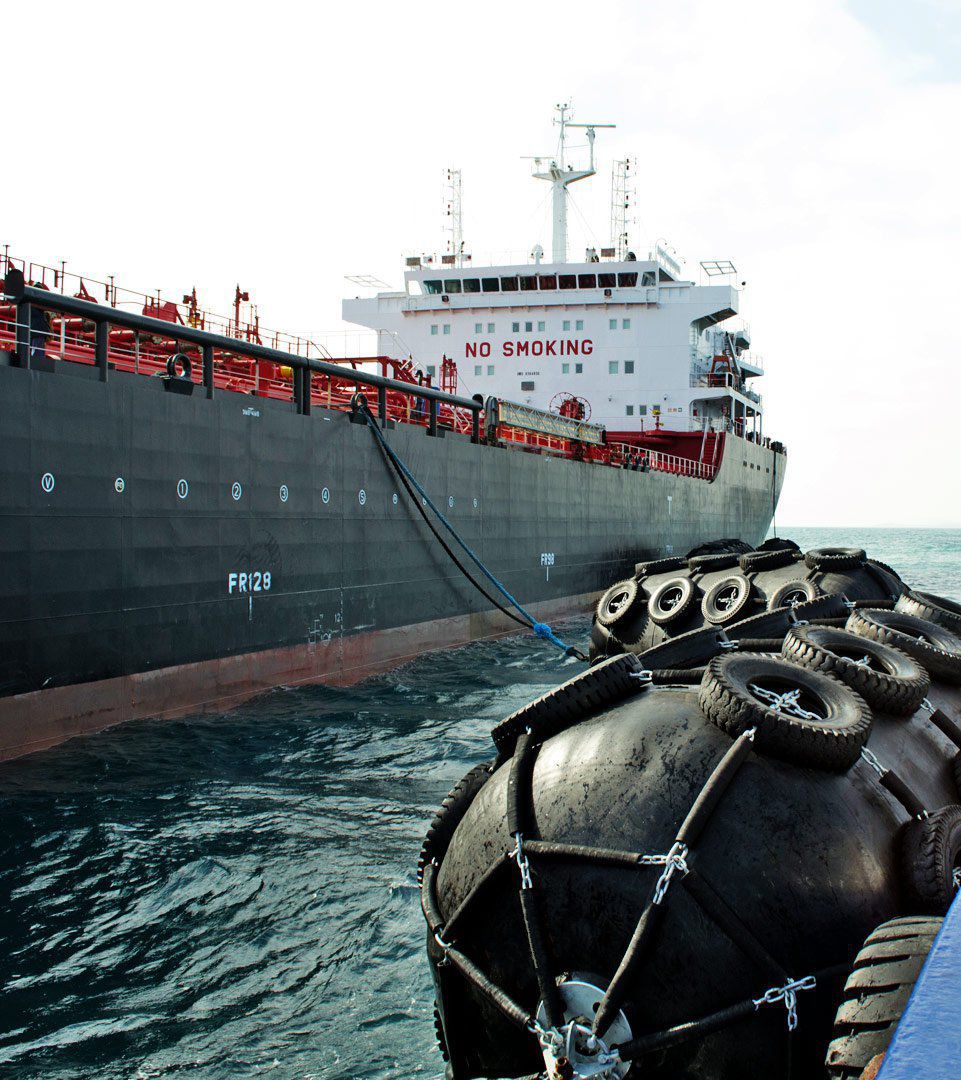 Las defensas marítimas son dispositivos neumáticos flotantes de caucho de alta resistencia, diseñados para absorber la energía del impacto durante el atraque de los buques o la transferencia entre barcos.