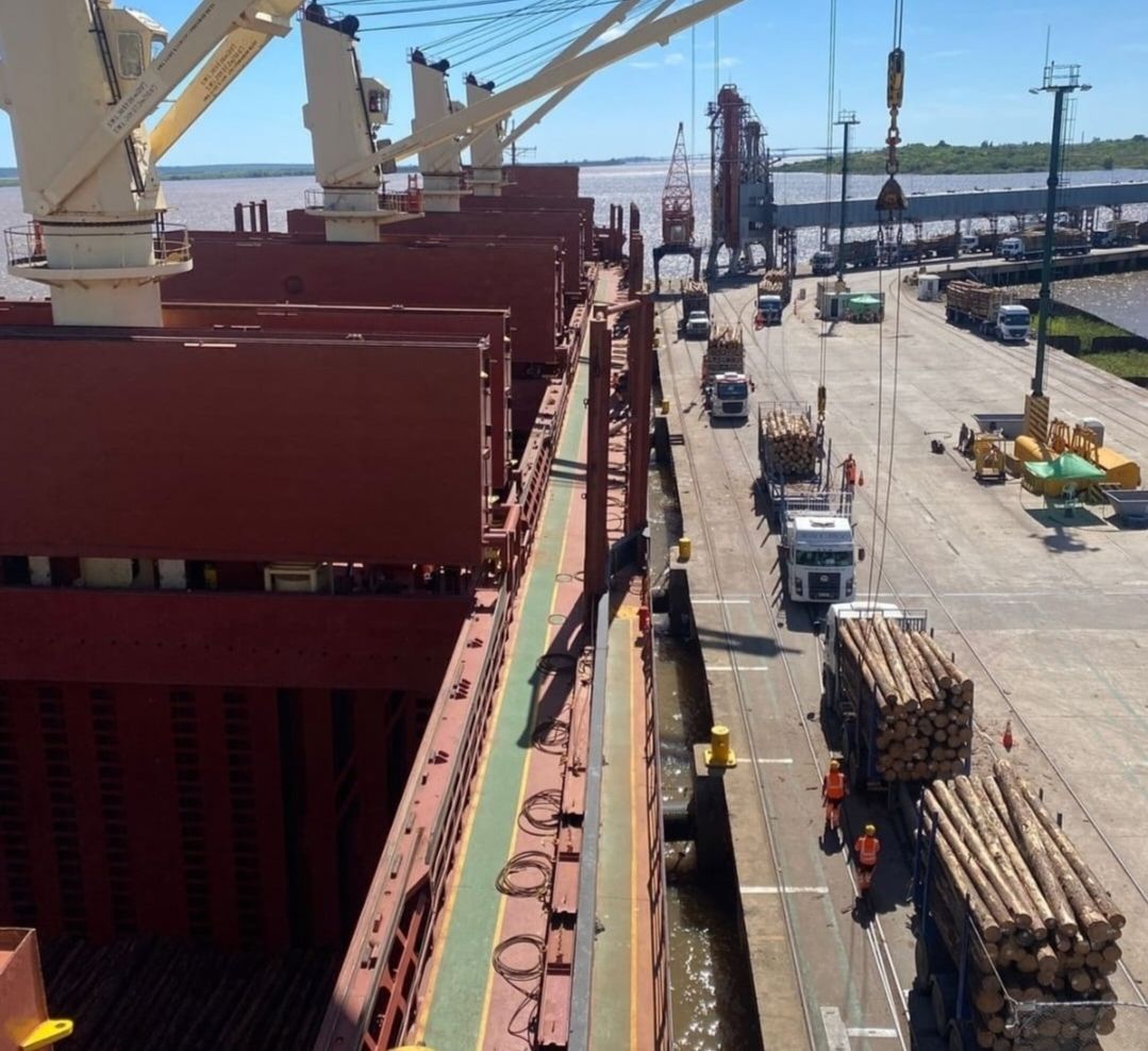 El último barco que operó en esa terminal del río Uruguay fue, en diciembre, el «African Warbler» (IMO 9852717), también con bandera de Bahamas, que cargó 17.000 ton. de rolos de pino a granel, con destino a India.