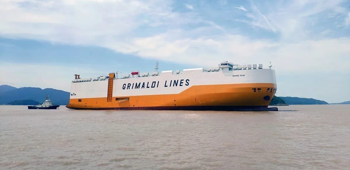 El buque Ro-Ro «Grande Texas» (IMO 9796365), del armador italiano Grimaldi Lines, arriba este martes 24 al puerto de Montevideo, procedente de Taicang, al este de China, desde donde zarpó el 17 de febrero, con previa escala en la terminal argentina de Zárate.