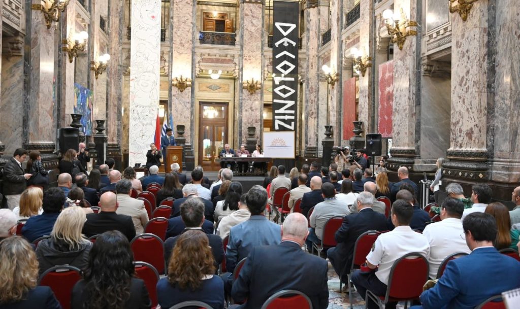 Menoni participó, junto al presidente de la Administración Nacional de Puertos (ANP), Pablo Genta y a la directora de Turismo de Montevideo, Karina Fortete, del lanzamiento de la temporada que se desarrolló en el Salón de los Pasos Perdidos del Palacio Legislativo.