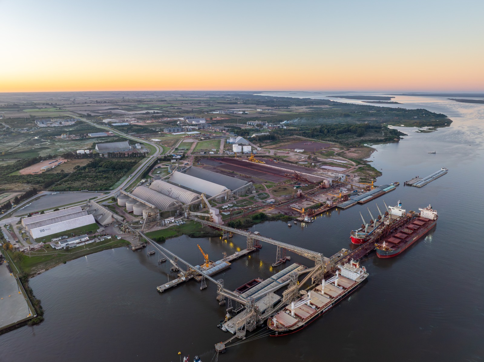 Para acompañar esta expansión la firma construyó una terminal específica, que recibe el mineral de hierro extraído de la localidad brasileña de Corumbá, Mato Grosso del Sur, el que es transportado en convoyes de barcazas hasta Nueva Palmira, con destino a ultramar.
