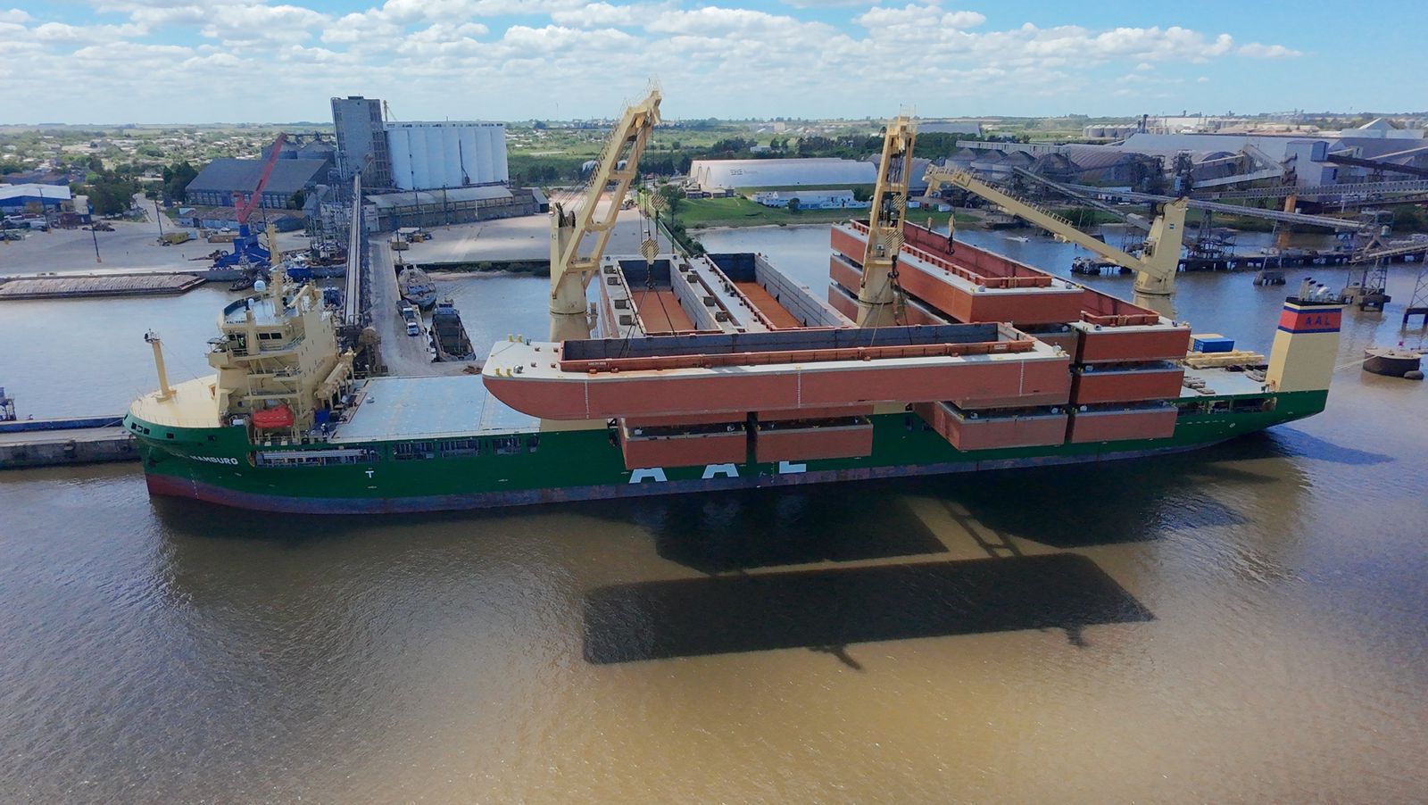 El conjunto de 16 barcazas jumbo se descargó entre el lunes 10 y el domingo 16 del buque «AAL Hamburgo» (IMO 9958767) del puerto cabecera de la hidrovía Paraguay-Paraná.