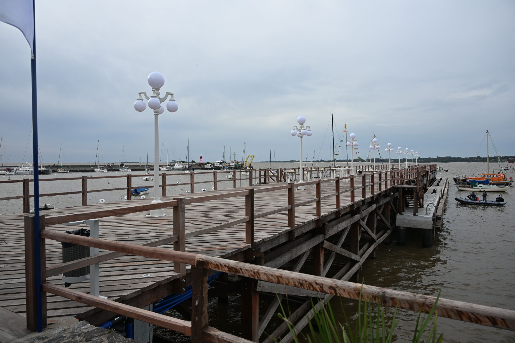 La obra revaloriza un histórico paseo de la ciudad de Colonia del Sacramento y contribuye al desarrollo del turismo naútico. La estructura posee 92 m. de largo y 12 m. de ancho y los trabajos comprendieron montaje de nuevos pórticos con pilares, vigas y diagonales, entablonado y reforzamiento integral de los pilotes. Además, se instaló un nuevo sistema de iluminación y se construyeron marinas de hormigón con 34 amarres para embarcaciones de hasta 15 metros de eslora.